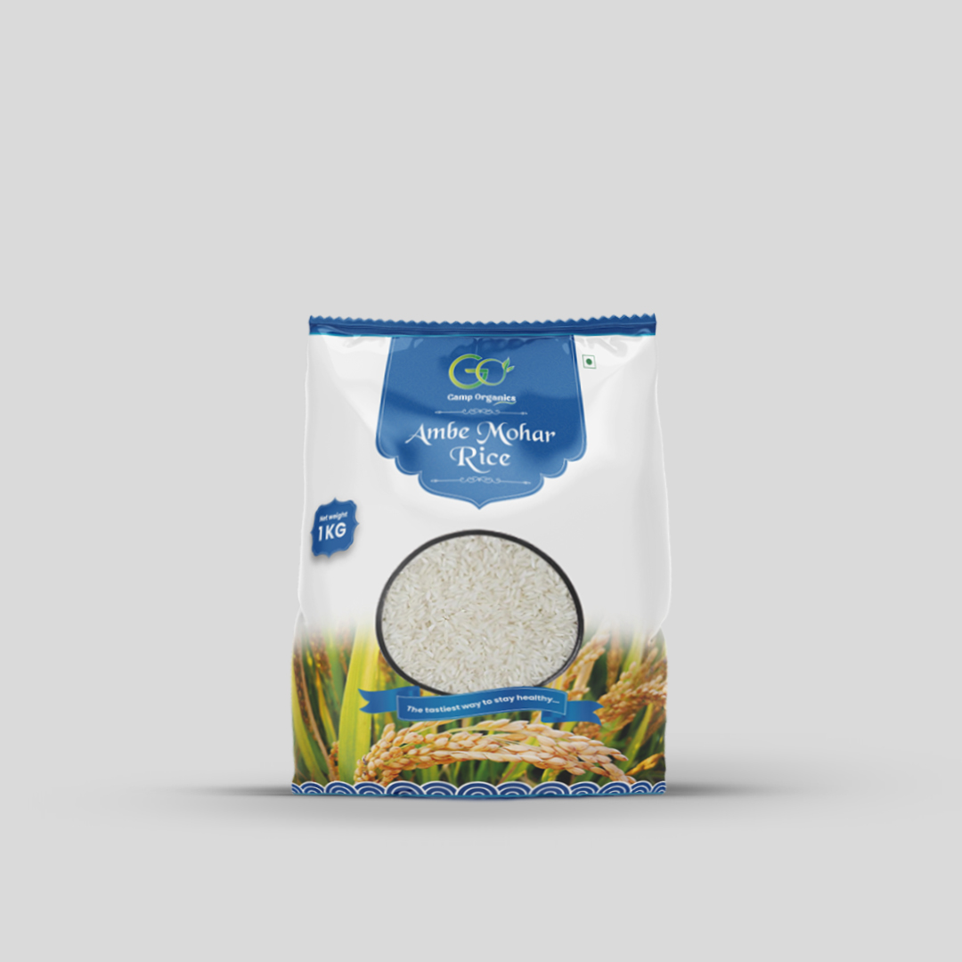 Experience the delicate aroma and soft texture of Gamp Organics Ambe Mohar Rice. Grown Naturally, this premium short-grain rice is perfect for traditional dishes, festive meals, or daily indulgence.